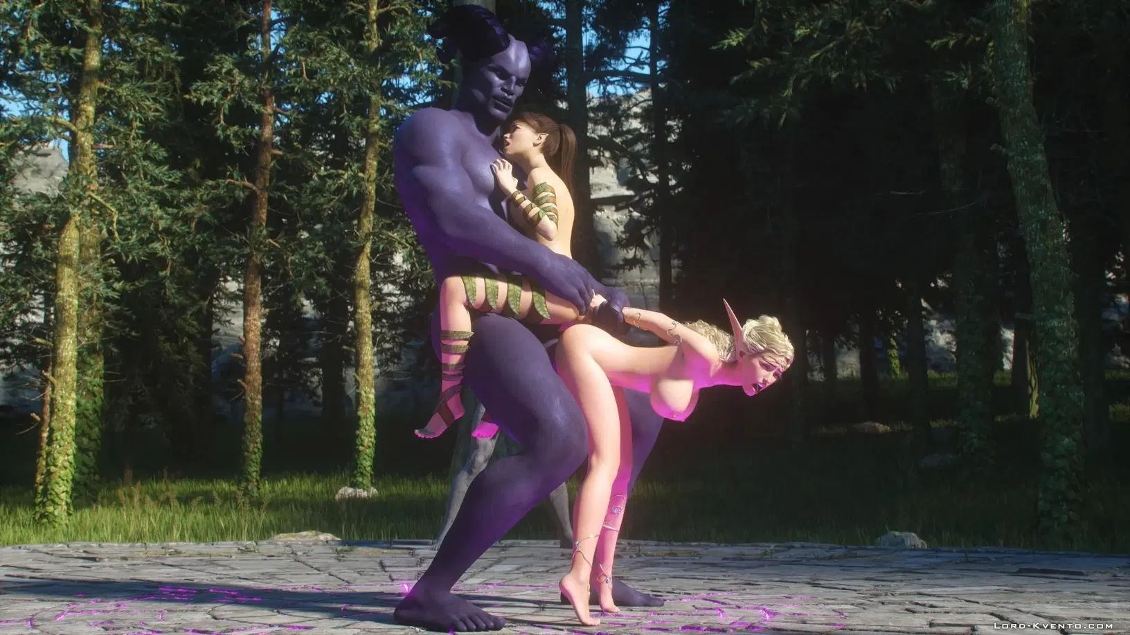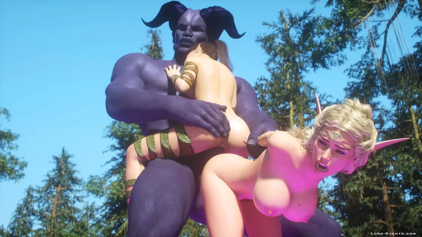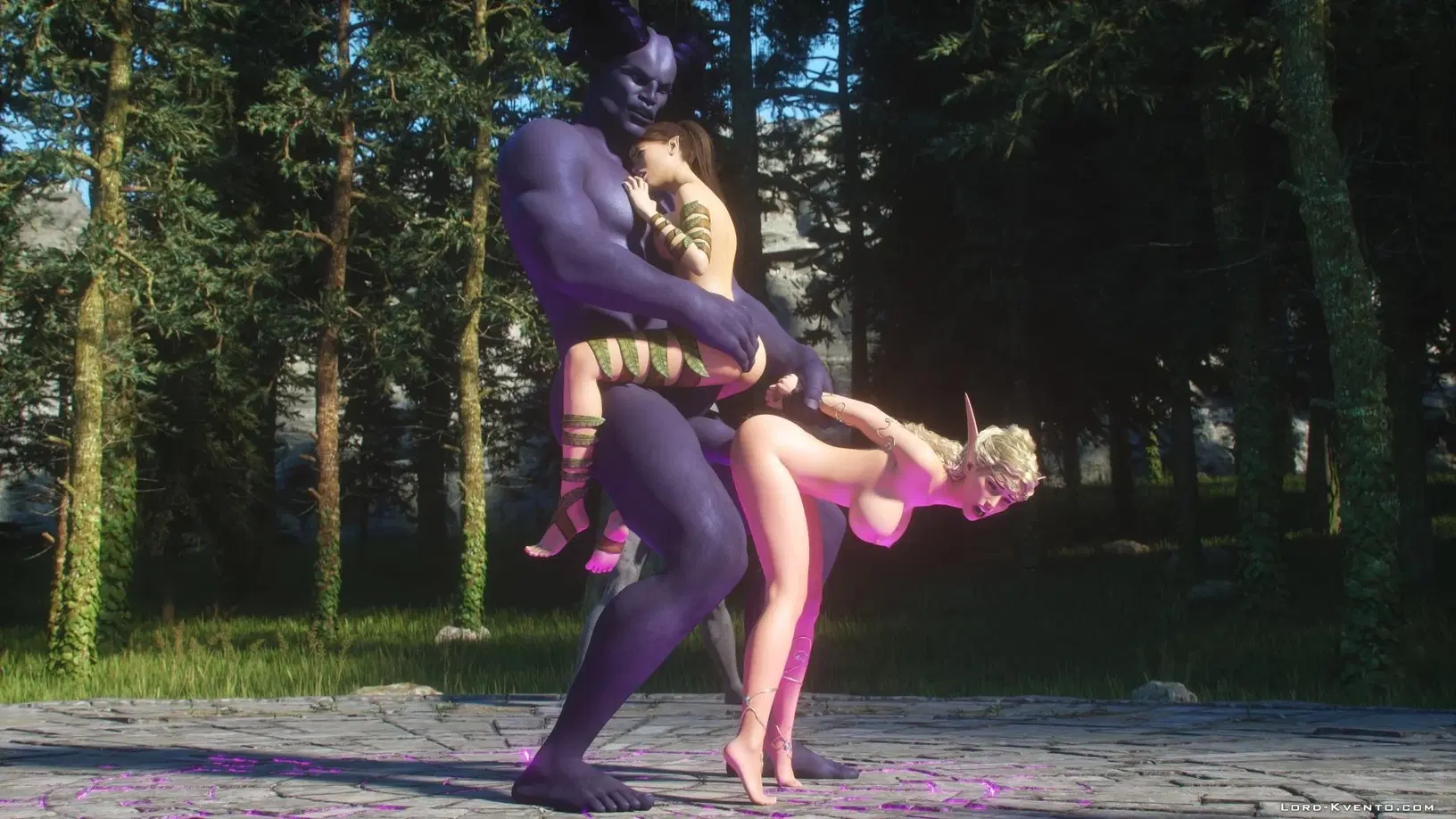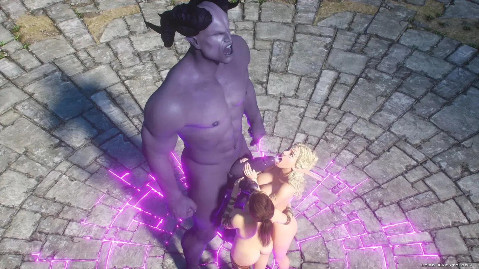 Для победы в войне против орков, эльфийка попросила свою подружку помочь пробудить голема, на которого возложено сексуальное проклятие ????