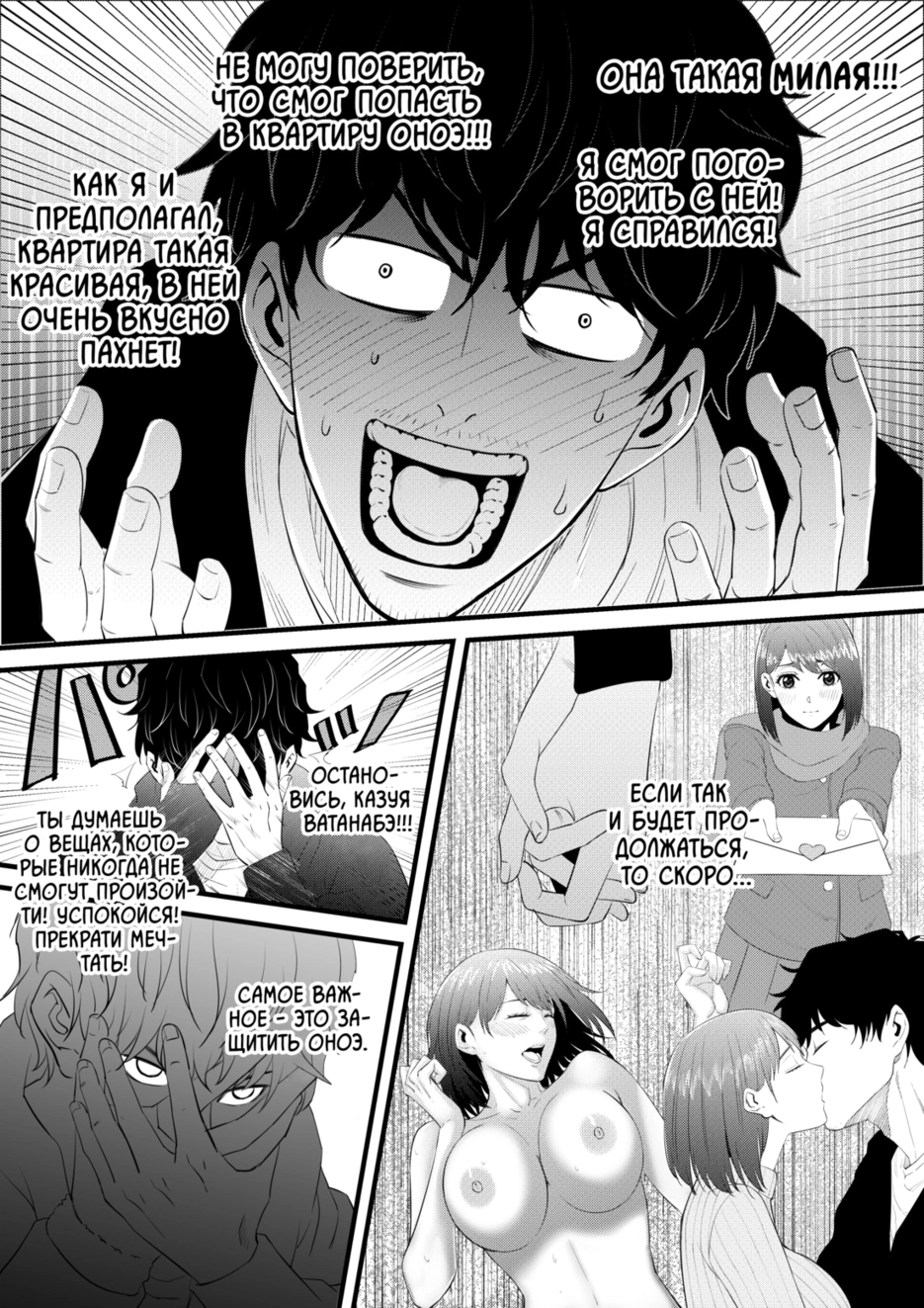 Казуя Ватанабэ долгое время был холостяком, который не мог найти стабильную работу и никак не мог отыскать хоть малейший лучик света в этой жизни. Самым счастливым моментом всего его дня было то, что каждый вечер около восьми часов вечера он выкуривал сигарету перед входной дверью своего дома. И это был единственный момент, когда он мог увидеть красивую девушку по соседству, которую зовут Оноэ, потому что она была той, от вида которой у него кружилась голова.\\nОноэ стала его надеждой.\\nИз-за того, что Ватанабэ чувствовал себя ничтожеством, он только здоровался и никогда не шёл дальше.\\nОднако однажды Оноэ неожиданно затащила его в свою квартиру...\\nНа самом деле ей угрожал сталкер.\\nТо, что произошло потом, навсегда изменило жизнь Казуя Ватанабэ.